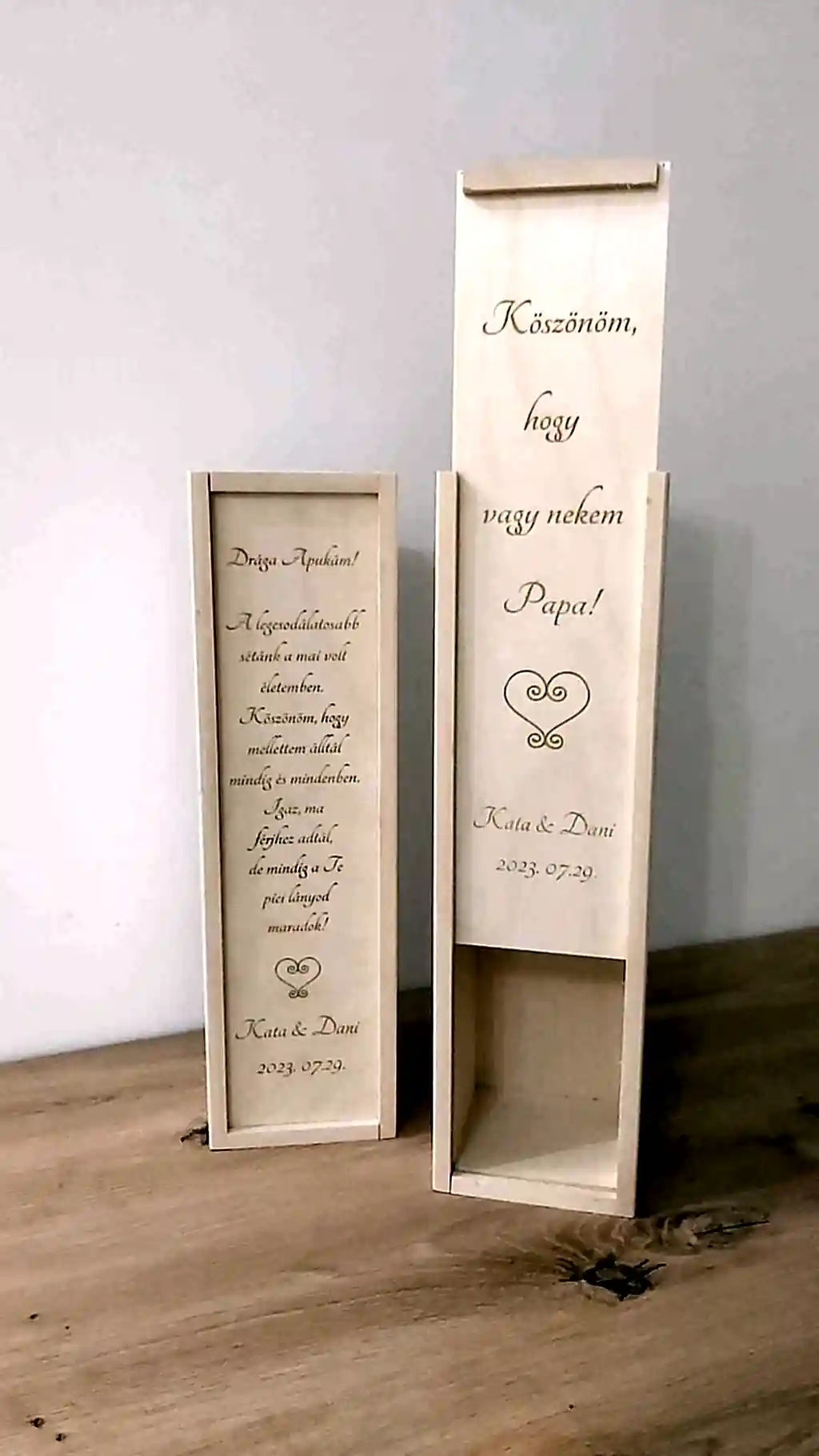 Fából készült toló előlapos boros doboz, a termék megfelel minden normál palackos bor számára.
